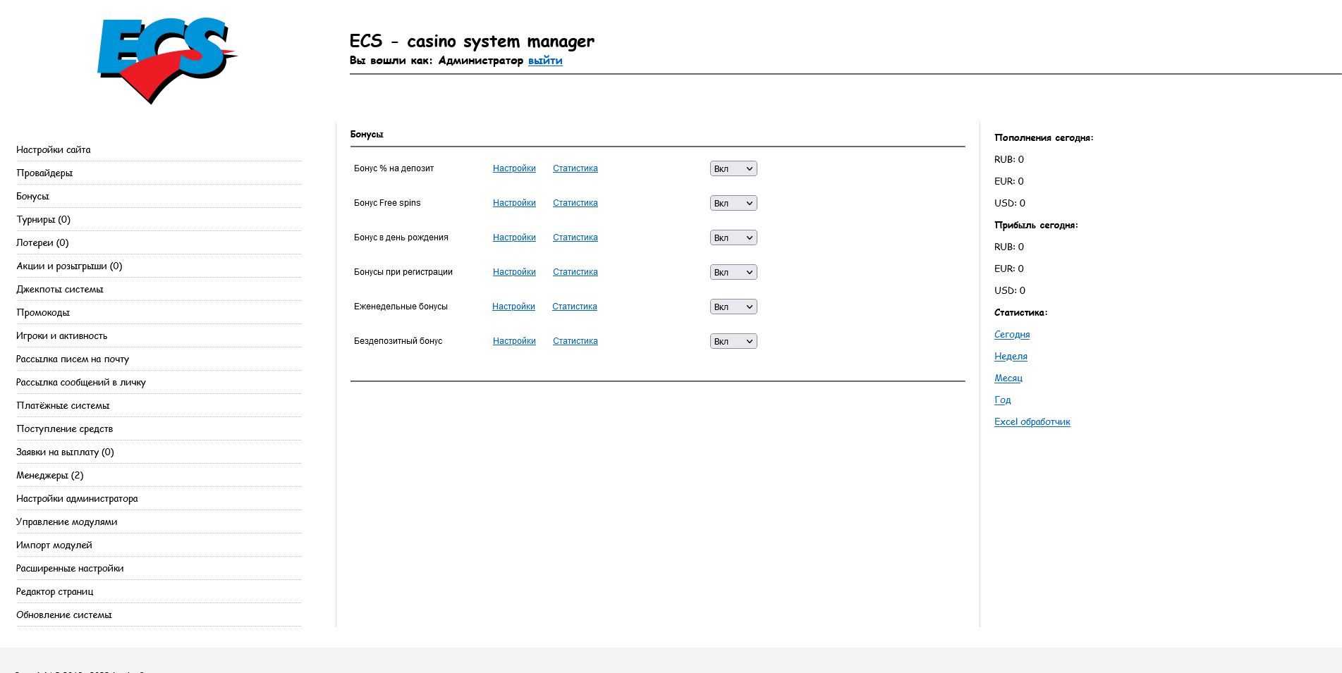 - Настройка бонусов на депозиты игрока